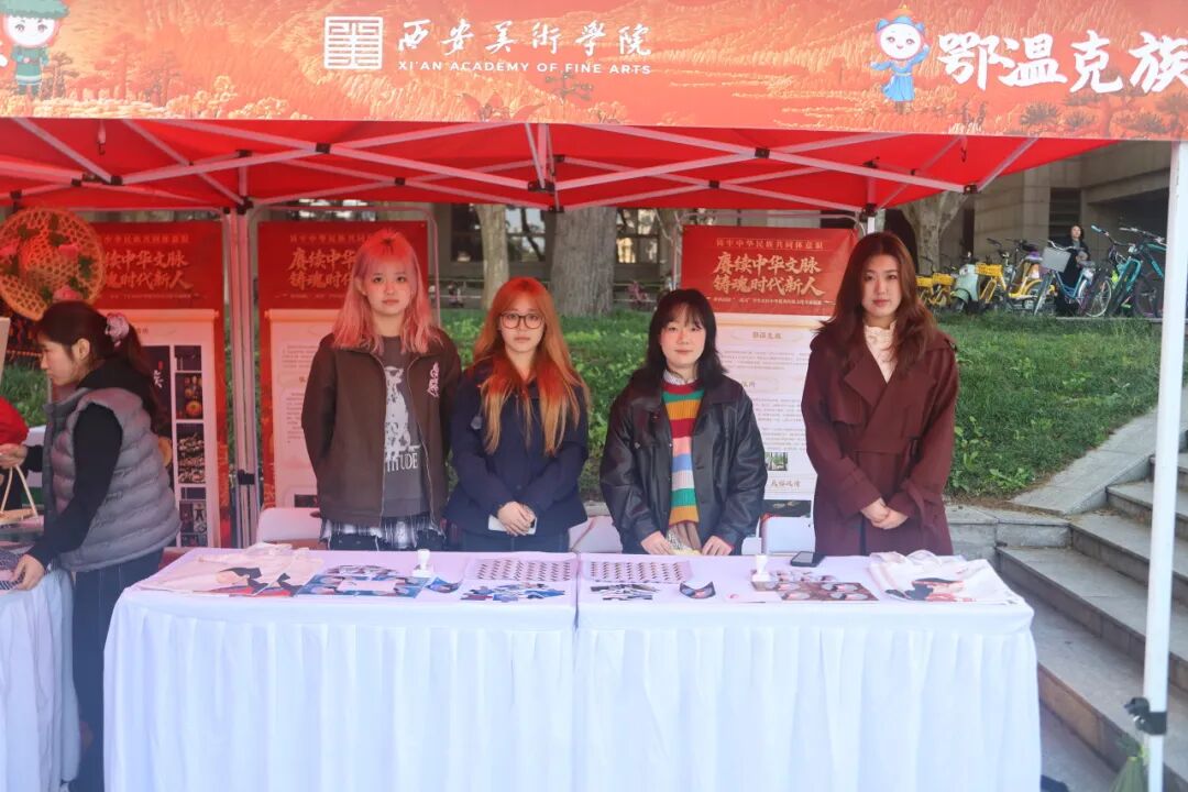 活动现场的民族特色集市中,我校精心打造了鄂温克族与珞巴族主题摊位,围绕两族文化内核,展出由我校师生独立创作的帆布包、印章、明信片、贴纸、拼图等文创作品,每一件作品都承载着对民族文化的深度解构与美学重构。从鄂温克族“太阳崇拜”与 “驯鹿文化”寓意下的独特纹样,到珞巴族 “海贝、彩珠”的传统配饰,西美学子运用专业技能,让民族文化以更富有趣味的姿态走进大众视野。