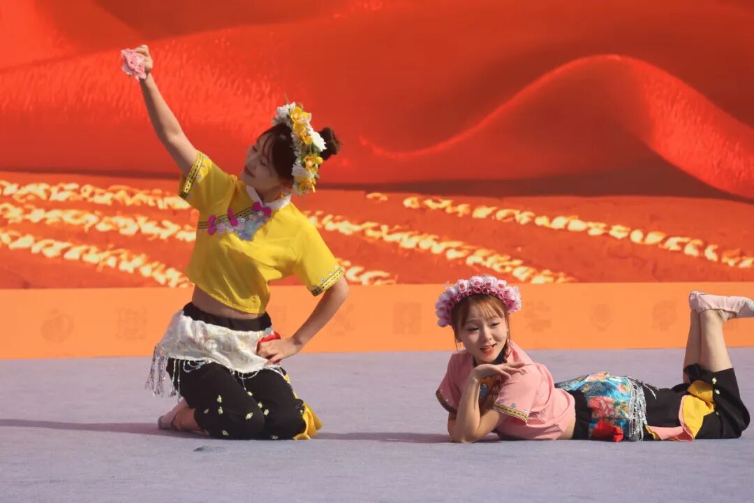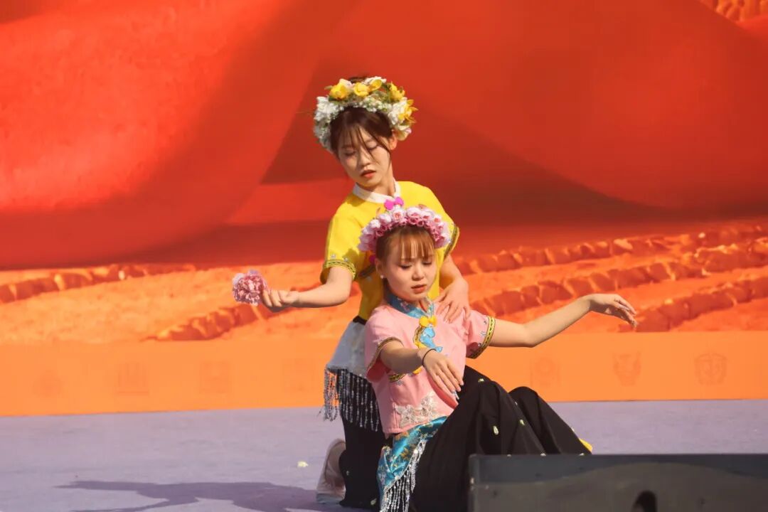 在节目展演环节,我校艺术教育学院学子联袂呈现双人舞《簪花送嫁》,以舞台艺术为载体,融合传统文化与现代艺术,还原了中华传统婚嫁文化的典雅意蕴。表演中,西美学子们手持簪花,身着具有民族特色的服饰,通过精心设计的编舞,描绘了出嫁前姐妹送别的场景。舞蹈动作融合了古典舞的柔美与民俗仪式的庄重,搭配悠扬的配乐,既生动再现了中华传统文化的深厚底蕴,又以年轻化的艺术表达让舞蹈“活”了起来,赢得现场师生阵阵掌声,成为舞台上展现传统美学的亮眼一笔。