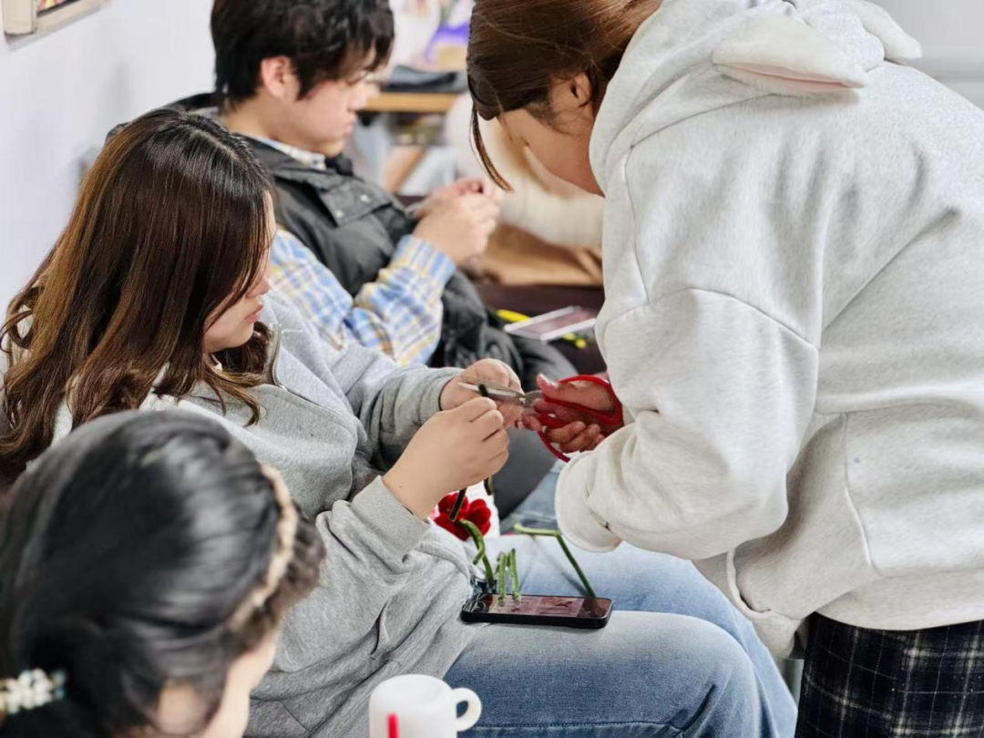开展美育实践,发挥专业优势。版画系开展“笔锋传暖・画语寄情”公益活动,为宁强县天津高级中学学子书写暖心鼓励信、手绘原创插画与明信片,以笔墨为媒传递成长力量。工艺美术系践行 “双传承” 实践工程,参与西安事变纪念馆元宵主题活动,开展红色文化服务。特殊教育艺术学院开展“送你一朵小红花”志愿活动,35 名志愿者发挥工艺美术专业所长,用毛毡、剪纸等材料制作小红花手工艺品,赠予校园及周边一线劳动者,以手艺传温暖。