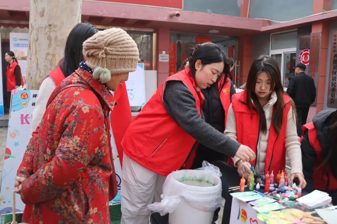 情系社会民生,聚焦群众需求。雕塑系开展 “雕塑青春・致敬城市美容师” 活动,师生志愿者前往丁白路街头开展环境整治,清扫道路垃圾,并为一线环卫工人送上爱心物资,用实际行动为城市添彩。设计艺术学院在元宵佳节走进广场社区退役军人服务中心,为社区老人煮汤圆、唠家常,陪伴老人共度佳节,还协助社区分发节日礼品,运用所学美化校园环境,营造敬老爱老的温馨氛围。艺术人文学院联合陕西省外贸家属院社区,聚焦社区居民尤其是老年群体实际需求,开展以 “义诊、义剪、普法宣讲” 为核心的便民服务。各院系志愿者西安市各社区、养老机构,开展文化宣讲、爱心帮扶等多样化服务,用实际行动诠释“奉献、友爱、互助、进步”的志愿精神。