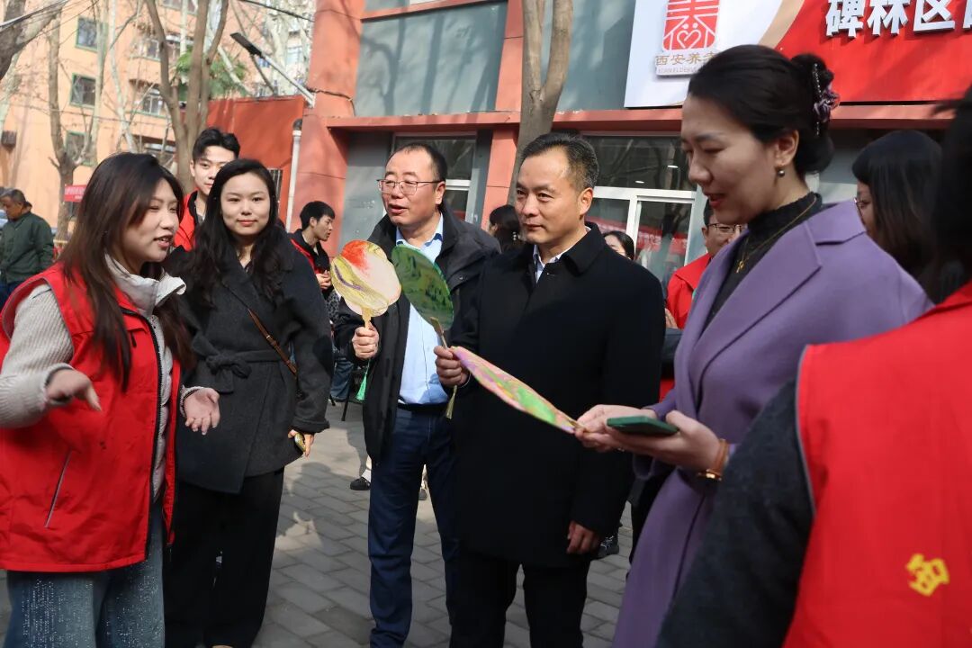 为响应团省委“青春志愿行 奋进‘十五五’”2026年陕西青年志愿者“学雷锋志愿服务”示范活动号召,西安美术学院青年志愿者协会、书法系、工艺美术系、影视动画系的20余名志愿者前往碑林区长安路街道西勘社区养老服务站,开展书法创作、非遗漆扇制作、义务拍照等服务,通过展示专业特色,丰富志愿服务内容,让奉献二字闪闪发光,以专业所长为社区送去温暖。共青团陕西省委副书记李臻、陕西省青年志愿者协会副秘书长亢凯在活动现场与我校志愿者亲切交流。