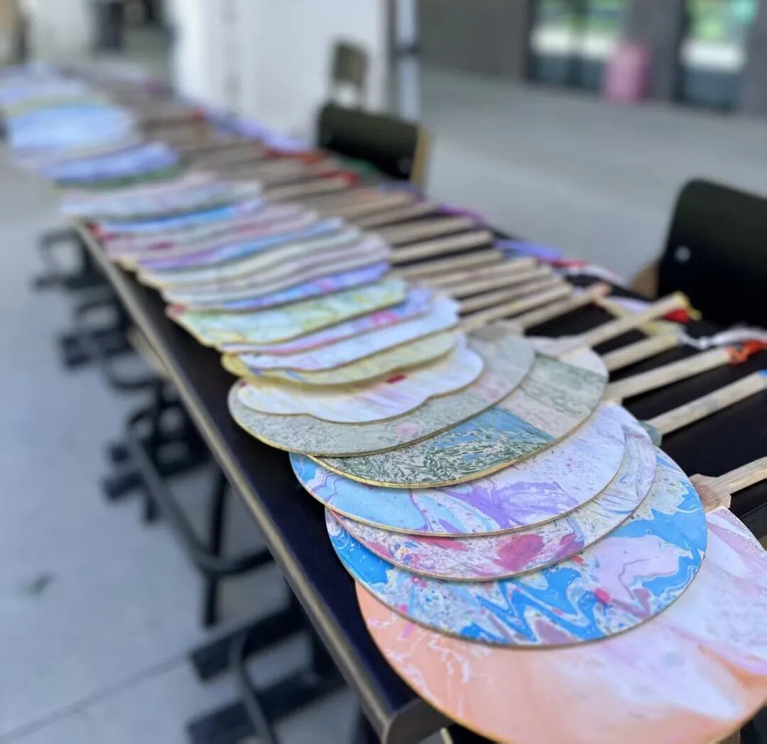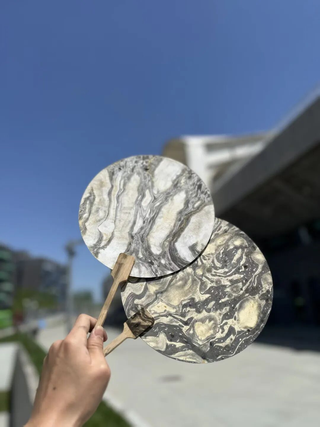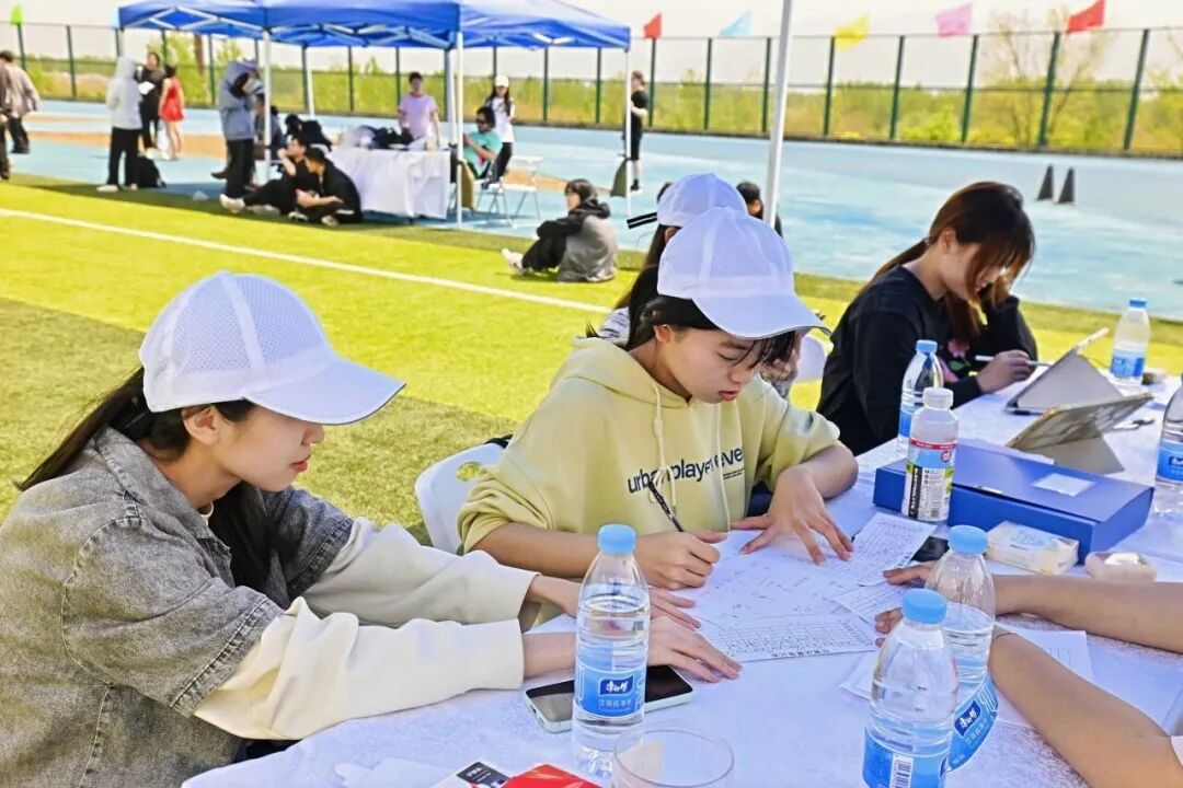 在赛场之外的下沉阶梯平台,师生们围坐于漆扇制作台前,或大漆漂流,或精细描绘,一件件独一无二的艺术品在指尖诞生。不远处的投壶游戏区笑声不断,赢取西美限定周边的小战场,成了紧张赛事中最轻松的调味剂;检录处旁边的学生会服务站,志愿者们或递饮水,或指引方位,还备有葡萄糖口服液、冰凉贴等用品,成了热血赛场里最清爽的补给站。