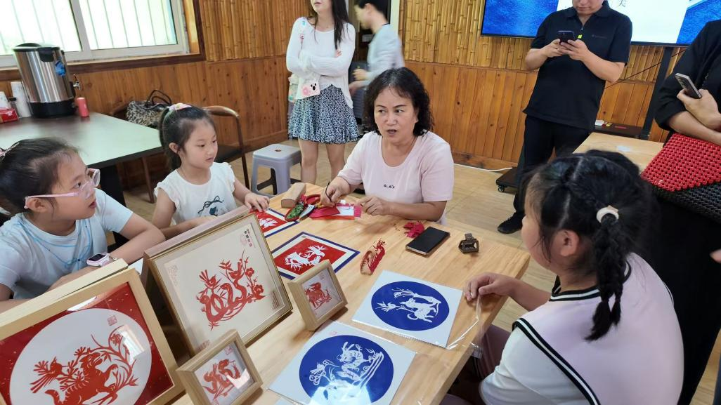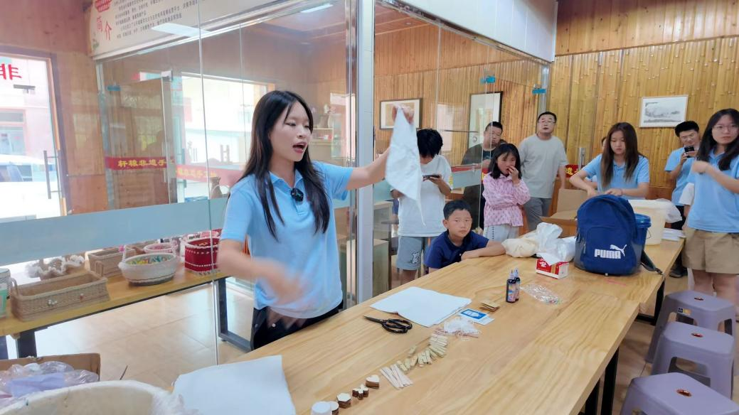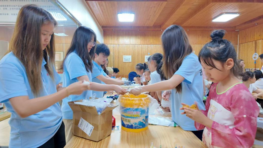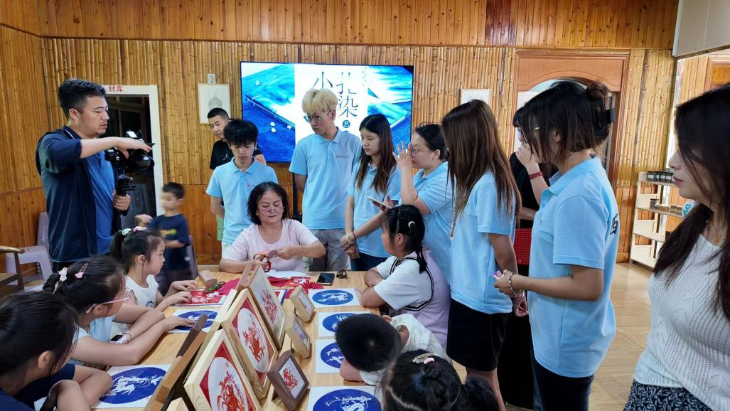 7月9日下午,团队在当地领导的支持协调下,与当地的传承人和居民共同开展了一系列非遗传承研学活动,一场热闹的非遗文化体验课程欢乐开启,通过扎染、漆扇制作、剪纸与捏花馍等活动,让孩子们在动手实践中感受非遗魅力,让文化种子扎根童心。
