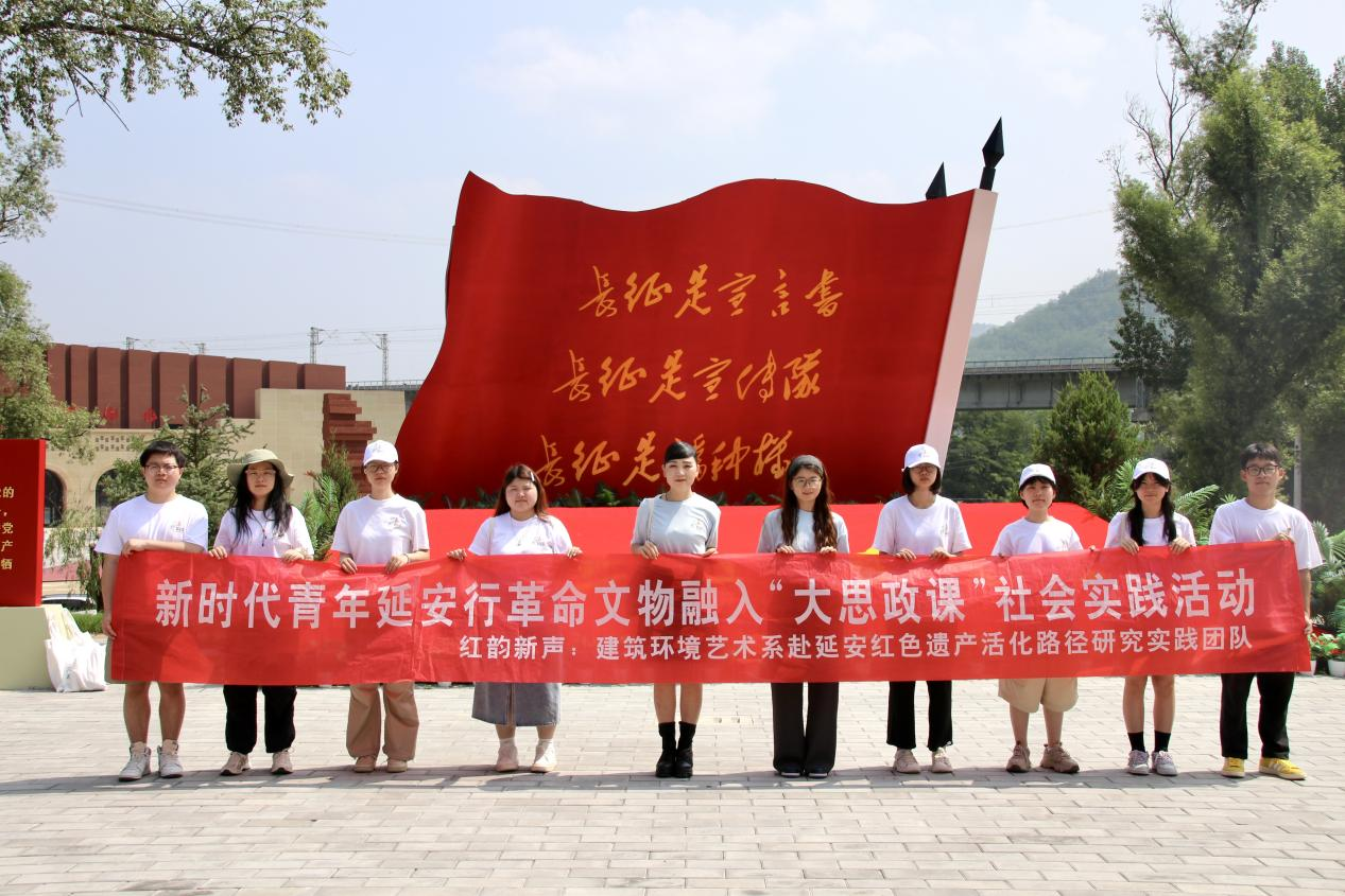 为深入贯彻党的二十大精神、党的二十届三中全会精神和习近平总书记关于“大思政课”、革命文物工作的重要指示精神,用好红色资源,赓续红色血脉,开创陕西高校思想政治工作新局面,培养担当民族复兴大任的时代新人,西安美术学院建筑环境艺术系组建了“红韵新声:建筑环境艺术系赴延安红色遗产活化路径研究实践团队”。该团队积极参与陕西省文物局、陕西省委宣传部、陕西省教育厅、西安市文物局、陕西高校革命文化传承联盟举办的“新时代青年延安行革命文物融入‘大思政课’社会实践活动”,围绕纪念中国人民抗日战争暨世界反法西斯战争胜利80周年主题,将延安精神与抗战精神有机融入到实践环节,通过实地调研革命文物与历史场景,有效引导学生感悟“天下兴亡、匹夫有责”的深厚爱国情怀。