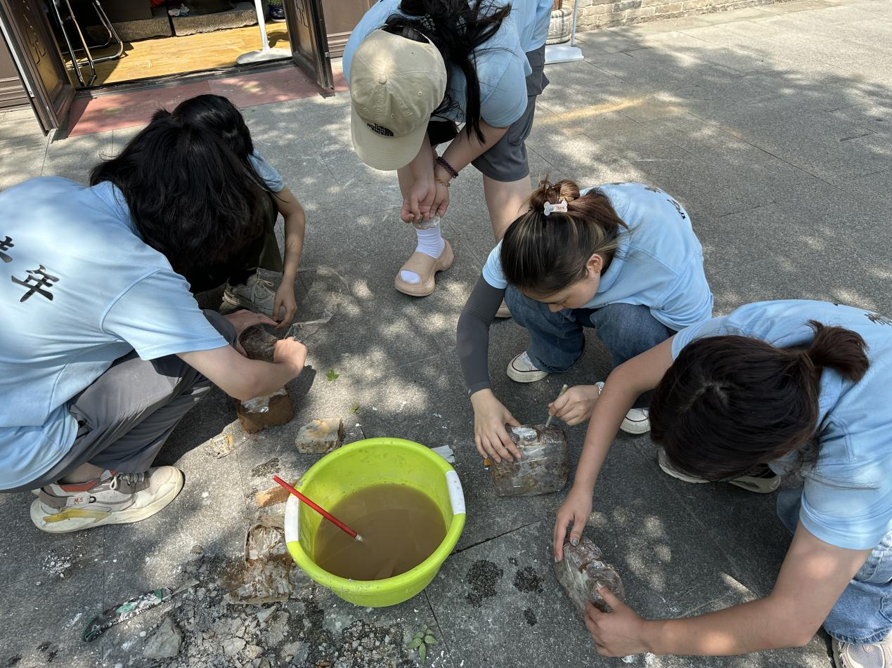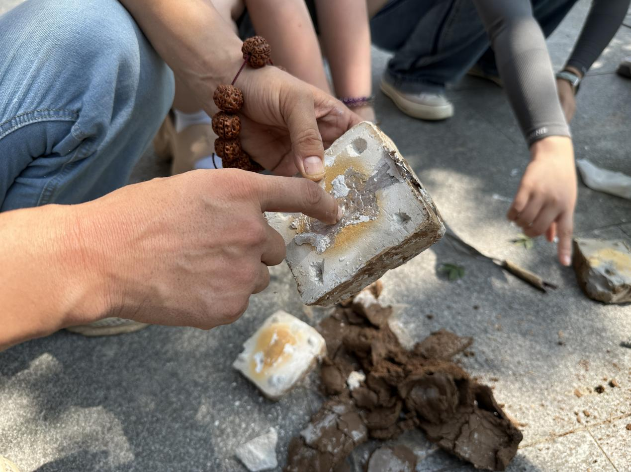 下午三时,经过一整天紧张而有序的工作,几乎每位同学都顺利完成了自己的金属铸件。他们用毛刷蘸清水,轻轻清理掉铸件表面的石膏残渣与杂质,一件件作品初现雏形,也初现每位学生独立完成一项复杂工艺后的欣喜与成就。