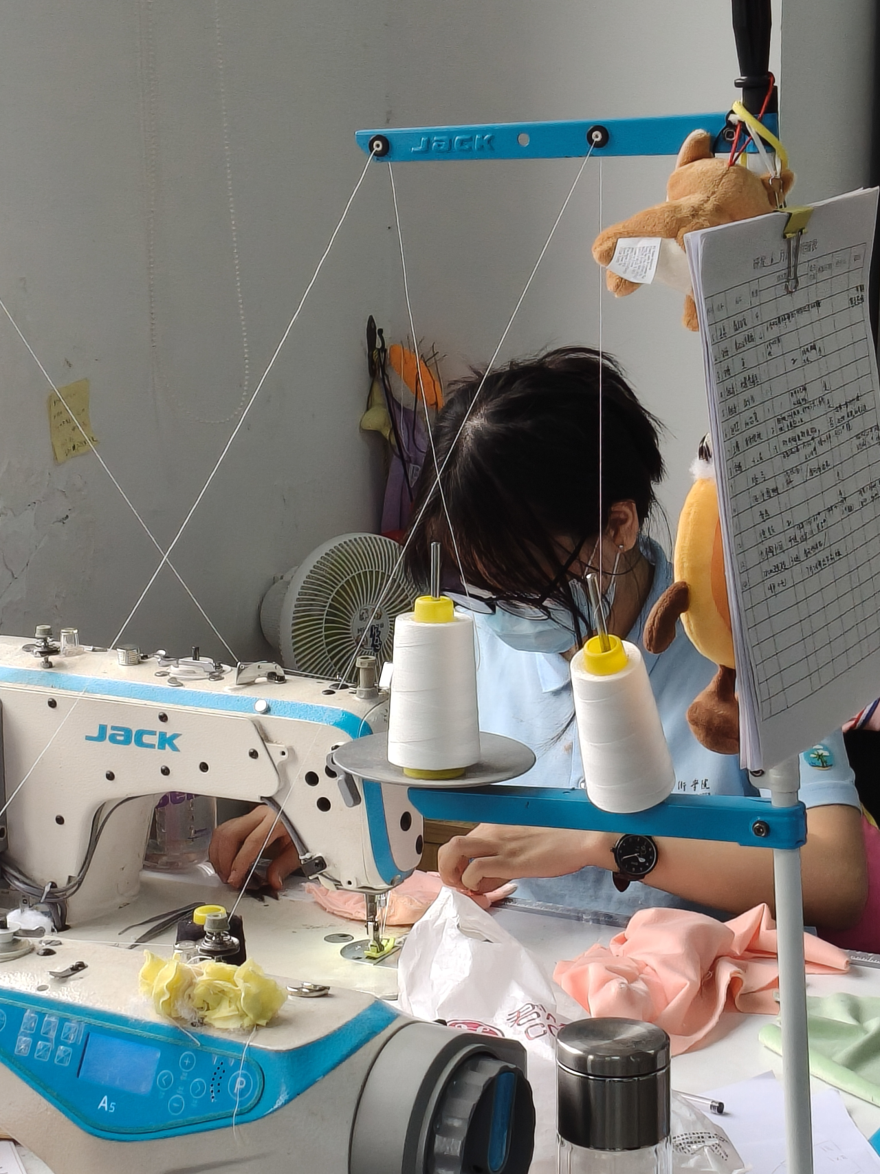 三楼缝纫车间挑战升级:锥子翻面考验手劲与技巧,充棉机需掌握“少量多次”要诀,藏针法缝合开口确保美观。