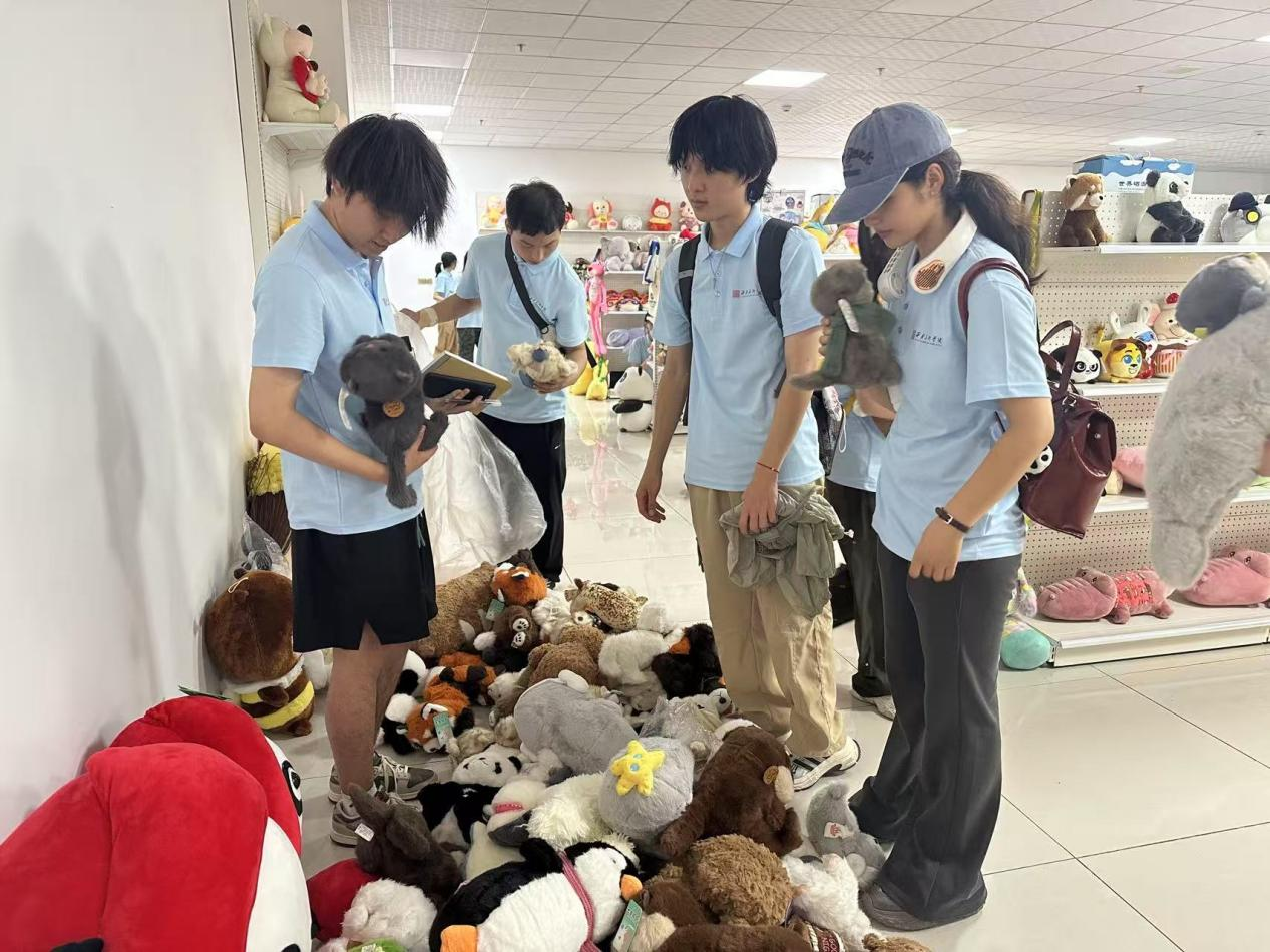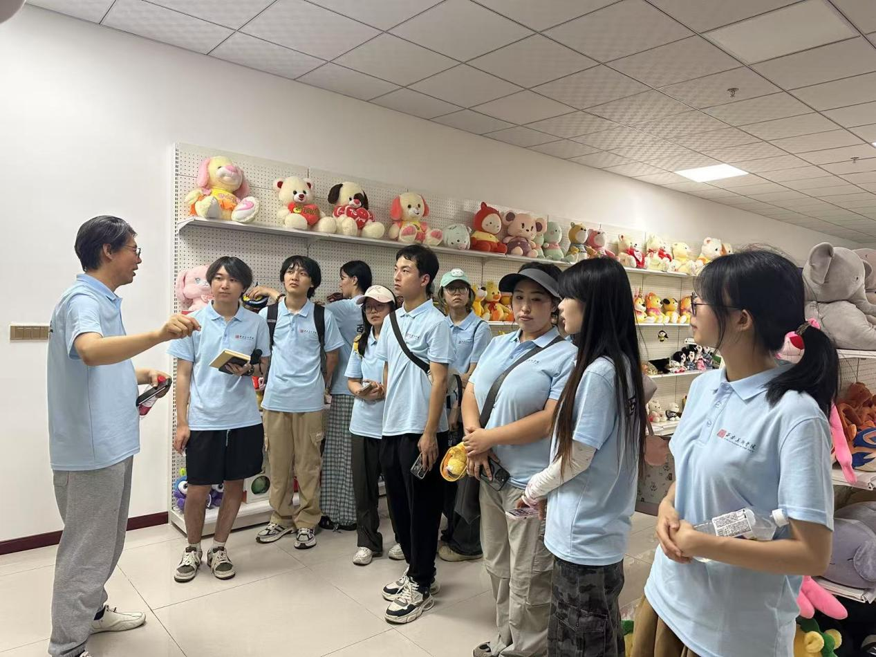 样品间的毛绒玩具造型各异,颜色大胆鲜明。通过实际走访,团队成员深入了解到毛绒玩具的整体工艺和成品效果。我系陶瓷与玻璃教研室主任刘训立在此次参观中特地强调:“作为工艺美术学子,我们更需要通过所学专业技能从造型、颜色搭配、工艺等方面给与建议”。紧接着工作人员热情邀请同学们用艺术的角度帮助工厂样品迭代更新。