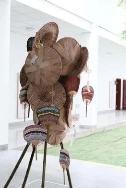 《和鸣》风铃装置是校地协同创新的生动实践,凝聚着西安美院团队与平和青年的智慧碰撞。创作过程中,美院师生充分发挥专业优势,从力学结构到空间布局精心设计,确保装置既具艺术表现力又符合安全规范,当地青年则深入挖掘畲族文化元素,将传统纹样与现代设计语言巧妙融合。双方在工坊里反复推敲每个细节——从竹材的选用到风铃的排列,从纹样的应用到声效的调试,每一处都经过数十次实验与改进。最动人的是装置核心部分的共创过程:两地青年围坐在一起,手指翻飞间,将畲族彩带编织成独具特色的风铃装饰。不同背景的创作者在交流中迸发灵感。那些悬挂的竹制风铃上,既有畲族传统纹样的创新演绎,也融入了孩子们参与创作的手绘元素,传统技艺与童真创意在方寸间和谐共生。