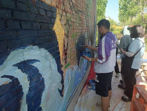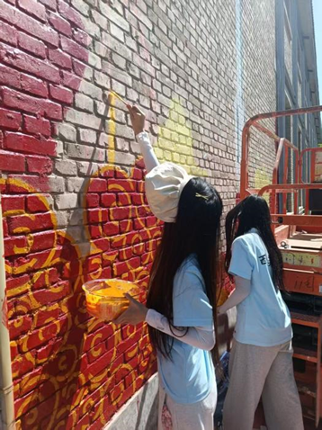 弯腰、抬臂、起笔、落墨、上色,画笔在光影的交错中灵动跳跃,如同一支支灵动的音符,奏响了城市美丽蜕变的乐章,绘就了这座城市的崭新风貌,吸引了众多市民纷纷驻足观赏,为之赞叹。随着实践队成员手中笔刷的缓缓移动,航天精神仿佛被赋予了鲜活的生命,从他们的笔尖流淌而出,跃然于墙面之上。原本单调乏味的砖墙,瞬间焕发出勃勃生机,成为了传播精神力量的生动载体,向人们诉说着航天人的拼搏与奉献。