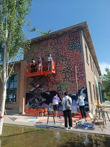 在酒泉无垠的戈壁瀚海上,航天精神早已超越时空界限,化为镌刻在岁月年轮里的精神图腾;科技强国的时代号角,则在新时代的壮阔征程中书写为亟待作答的发展命题。7 月 8 日,“美丽酒泉・青春行动” 三下乡社会实践团队接续奋斗的足迹,以艺术为桥梁搭建起跨越时空的对话,用墙绘的斑斓色彩凝固航天史诗的峥嵘瞬间,借美育的温润力量传承永不褪色的精神内核。