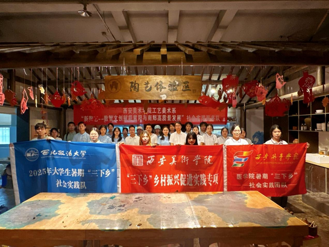 在共青团紫阳县委员会精心搭建的交流平台上,我们与同期到访的西北政法大学、西安外事学院实践团队欣然相聚。三校学子以富硒陶泥为媒,跨越专业藩篱,围绕紫阳发展路径展开研讨与实践,共探专业力量如何深度赋能城乡建设。思想在此碰撞激荡,友谊的种子悄然播下,三方成员最后共同合影留念。