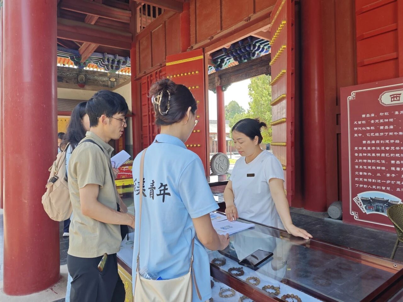 7月7日,实践团队前往西岳庙进行文化调研和游客采访。