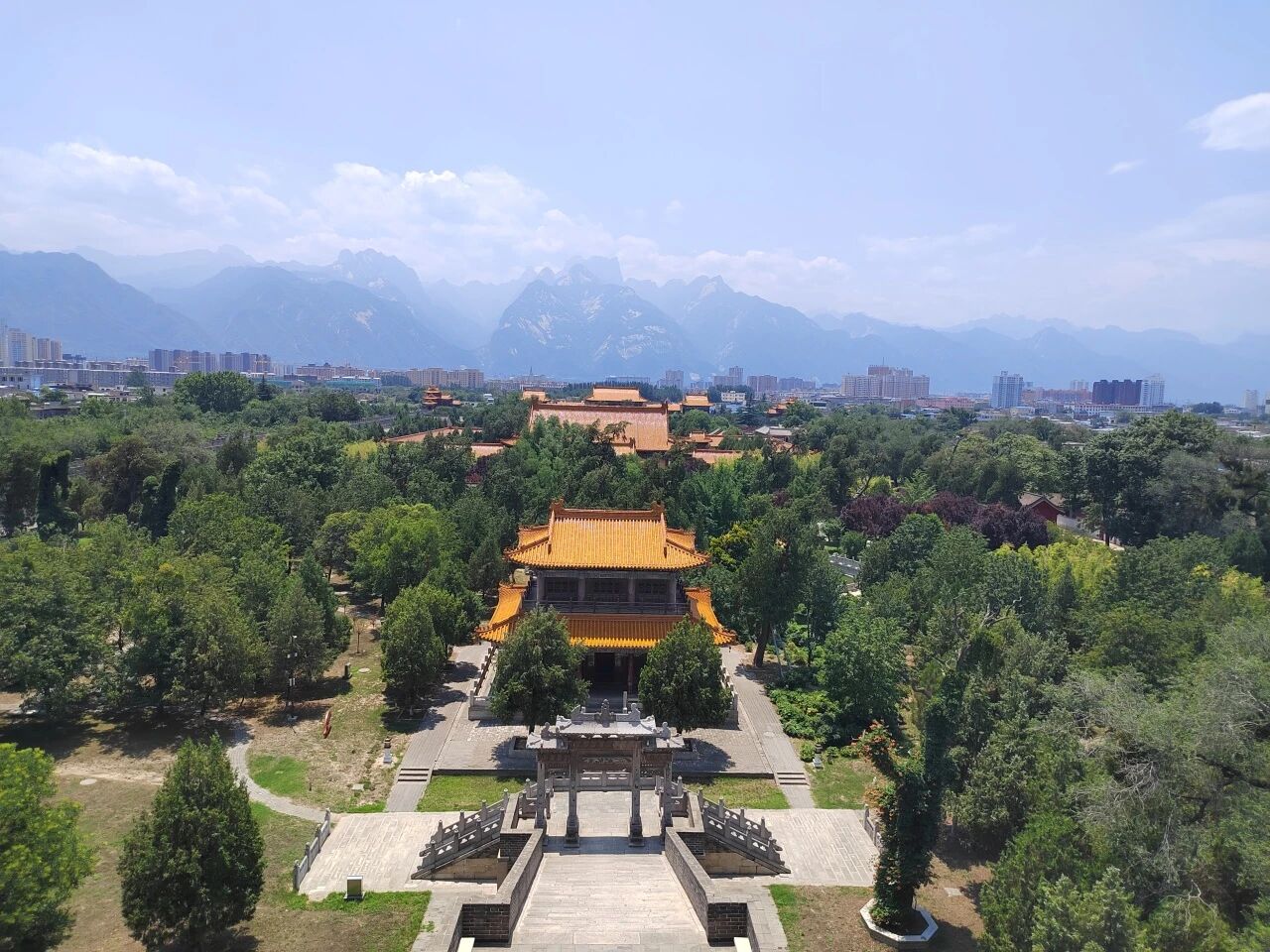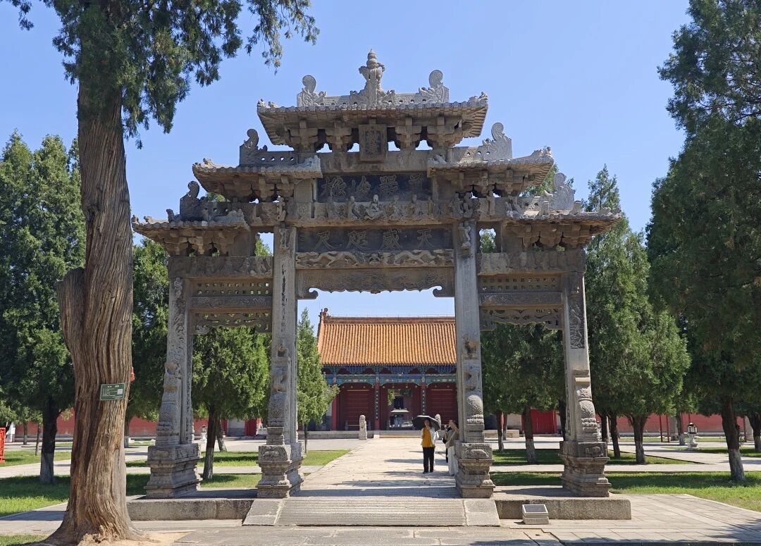 西岳庙作为供奉西岳大帝华山神的重要庙宇,位于华山以北的岳镇街,始建于汉武帝时期,历经唐宋发展,明清完善,成为历代帝王祭祀华山神的场所。其占地面积数万亩,是五岳中规模最大的庙宇,整体布局坐北朝南,建筑群主体沿南北轴线左右对称,前后分为多个空间。建筑形式为外城内廓,中轴对称,规格仅次于皇宫坛庙,素有“陕西小故宫”之称。主要建筑包括灏灵门、五凤楼、灵星门、金城门、灏灵殿、寝宫、御书楼、万寿阁等,均覆以黄色琉璃瓦,气势恢宏。正殿灏灵殿为琉璃瓦单檐歇山顶,坐落于“凸”字型月台之上,历代帝王多于此祭祀,殿内悬挂有康熙、道光、慈禧等所题匾额。院内林木繁茂,山石嶙峋,兼具园林之趣。此外,庙内碑刻众多,现存后周“华岳庙碑”、明重刻“唐玄宗御制华山碑铭”、明万历刻“华山卧图”及乾隆御书“岳莲灵澍”石额等,这些碑刻不仅具有极高的书法艺术价值,也为研究古代建筑、宗教文化及历史变迁提供了珍贵的实物资料。