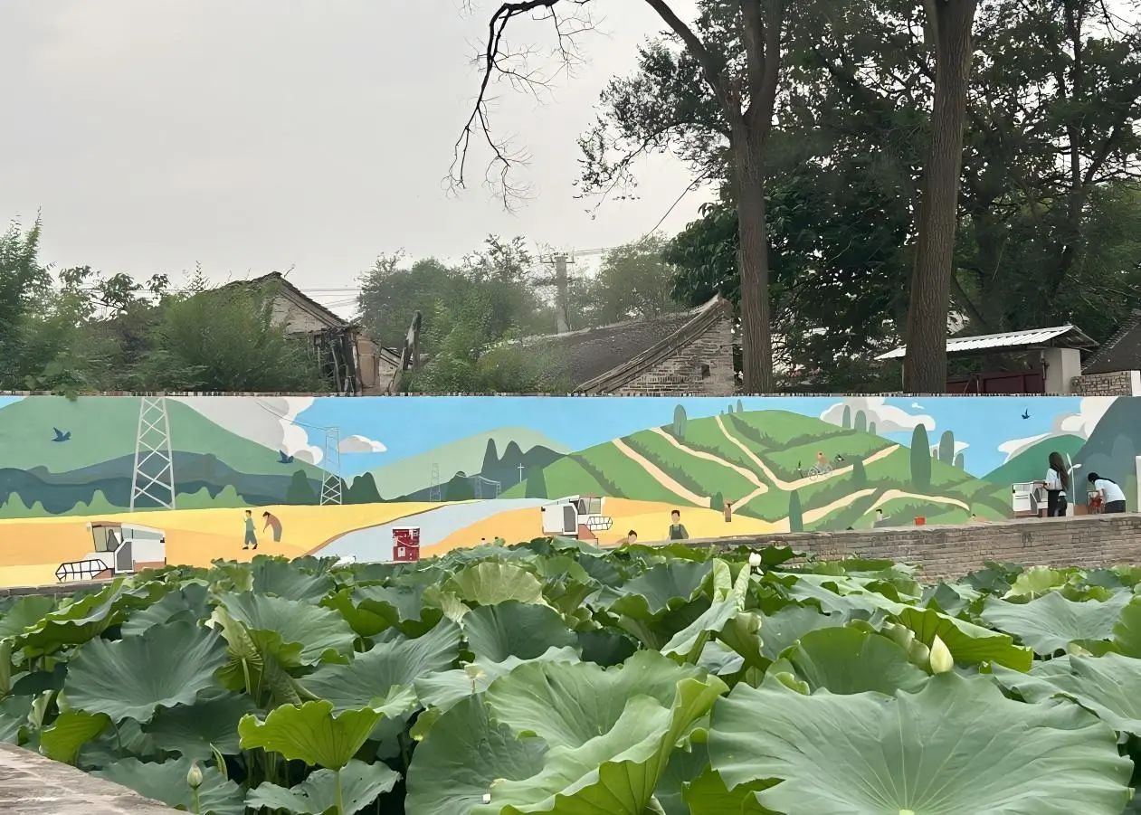 党群服务中心对面墙上的创作也接近尾声,队员们以丰收的田野为背景,用鲜艳的色彩勾勒出一片金黄的稻田,麦浪翻滚,颗粒饱满。现代化的农机穿梭其间,洋溢着丰收的喜悦。这幅墙绘不仅展现了乡村的繁荣与希望,更传递出乡村振兴的蓬勃力量。