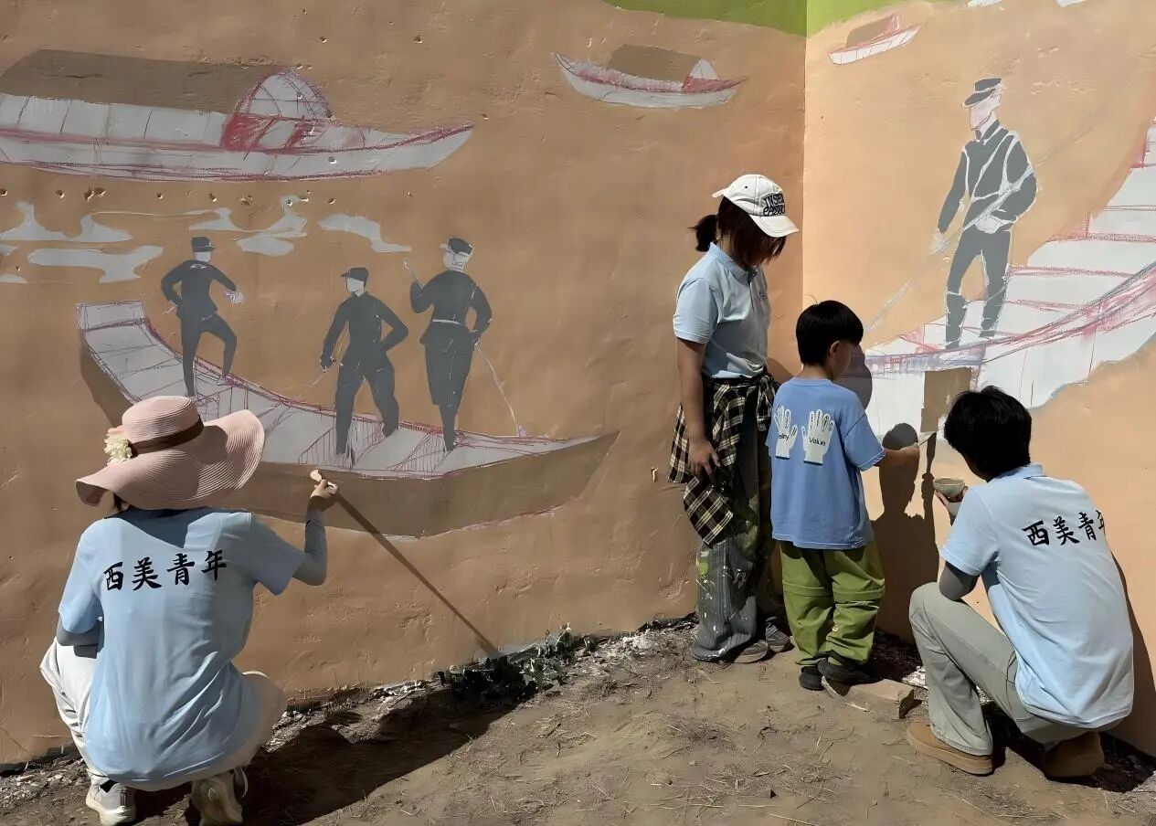 当晨光唤醒韩城芝川镇城南村,工艺美术系“红星艺韵·美育乡村”党员先锋实践队的队员们已整装待发,今天的“三下乡”行程在画笔与红色故事的交织中展开。队员们以精益求精的态度完善墙绘创作,并走访两位民间手艺人,探寻传统工艺在新时代的传承之路。