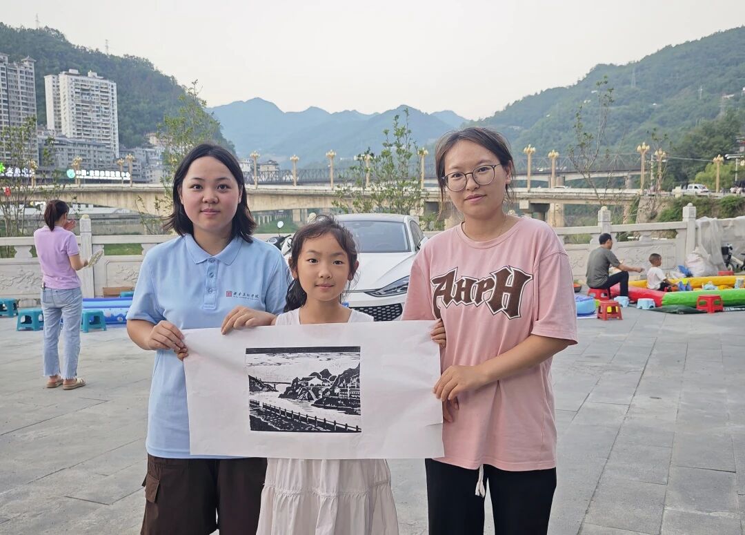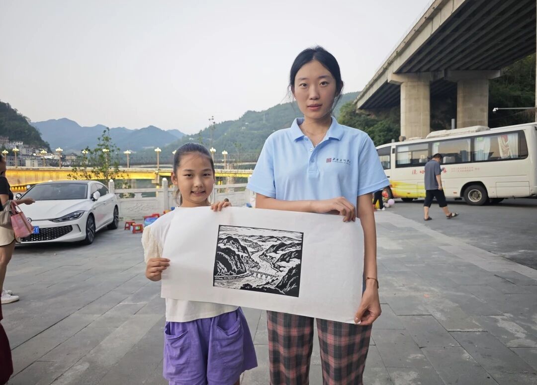 “让艺术走进生活,走进紫阳。”团队成员于文笔山下广场开展了全民版画印制体验活动。活动旨在普及版画知识,成员们以专业且严谨的态度,向参与者详细讲解版画的历史脉络与其特质。
