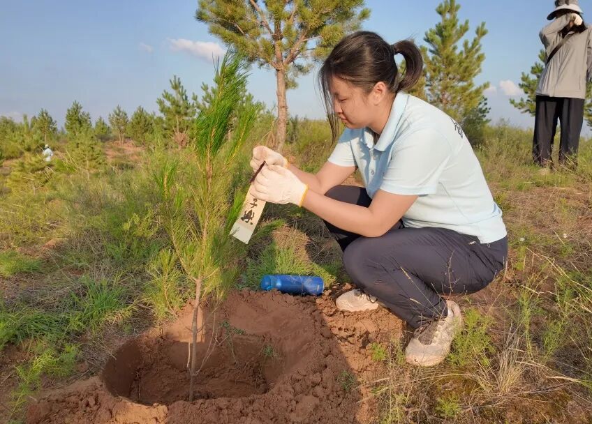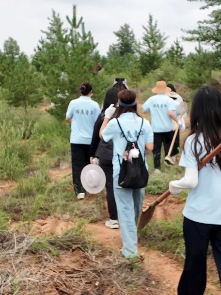 手握树苗,其根如渴求的笔锋,我们郑重植入“沙宣”大地——以生命为墨,勾勒坚韧的“点画”。躬身深掘如运笔沉实,覆土压实是“力透纸背”的践行,每株幼苗都是饱含希望的“活字”。