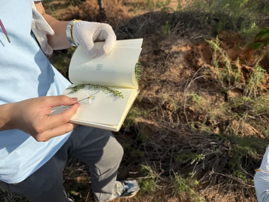 为记录治沙之旅,队员们制作沙地植物标本。采集沙柳的嫩枝、柠条的花瓣、长柄扁桃的叶片、根系发达的梭梭草等。回到驻地后,大家对植物进行整理、压制、装订,将这些承载着沙漠生态信息的植物,制作成精美的标本。每一份标本都是沙漠生态的缩影,不仅加深了大家对当地植物的认识,也为后续开展生态保护研究和宣传教育留存了珍贵的资料。