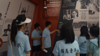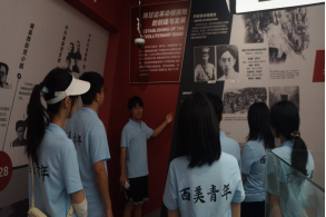 当团队成员们结束在革命历史展区的深情讲解,感受着先辈们用鲜血铸就的信仰力量,一股澎湃的激情在胸中激荡。在博物馆的党旗面前,他们自发列队,面向神圣的党旗,紧握右拳,进行了一场意义非凡的集体宣誓,将推普实践的初心与青年党员的使命紧紧相连。