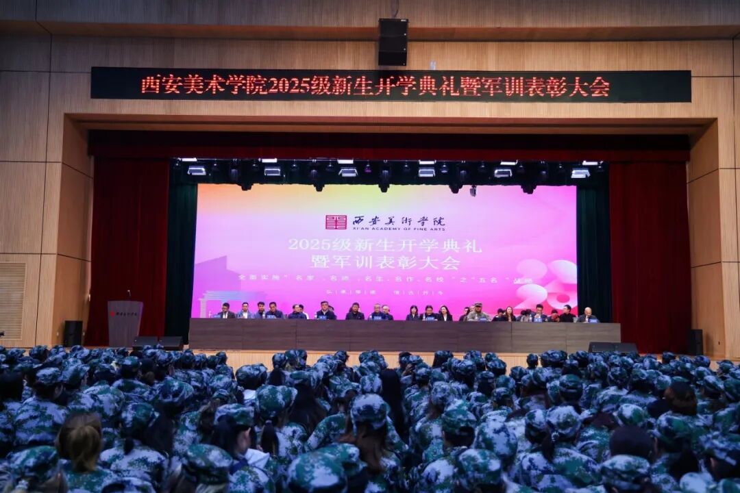 9月28日下午,西安美院2025级新生开学典礼暨军训表彰大会在长安校区体育馆举行。党委书记丁巨涛,院长朱尽晖,党委副书记、纪委书记、监察专员刘军,副院长何军、武小川、雷晓辉,陆军边海防学院学员一大队学员二队少校政治教导员、军训团团长景熠阳出席大会。大会由副院长张浩主持。