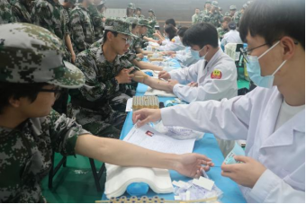 为全面掌握2025级新生身体健康状况,扎实做好疾病预防控制与学生健康管理,军训团联合卫生所近期分阶段开展了新生健康检查工作。