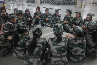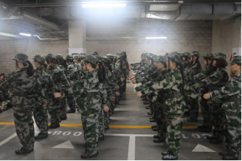 军训团组织学生在车库训练