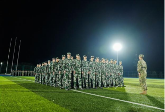 立正时,大家收腹挺胸、下颌微收,保持着纹丝不动的站姿;稍息、跨立动作干脆利落,展现出良好的纪律意识;停止间转法中,转体时的动作整齐划一,铿锵有力;齐步前进环节,同学们步幅统一、摆臂规范,脚步声与口号声相互呼应,响彻夜空;敬礼动作标准庄重,眼神中满是对军人的崇敬与对集体荣誉的珍视。每一个动作都凝聚着连日来的汗水与努力,每一个细节都彰显着同学们的成长与蜕变。