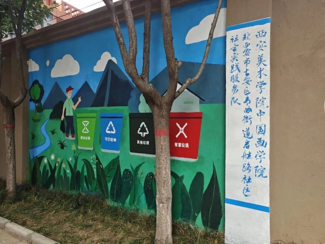 活动伊始,服务队便与启航路社区工作人员进行深入沟通,精准把握社区在提升人居环境、倡导文明风尚方面的实际需求。基于此,师生们充分发挥专业优势,共同确立了以“绿色家园”为核心,融合生态理念,设计了四幅墙绘方案,旨在通过艺术美化公共空间,传递绿色文明理念。