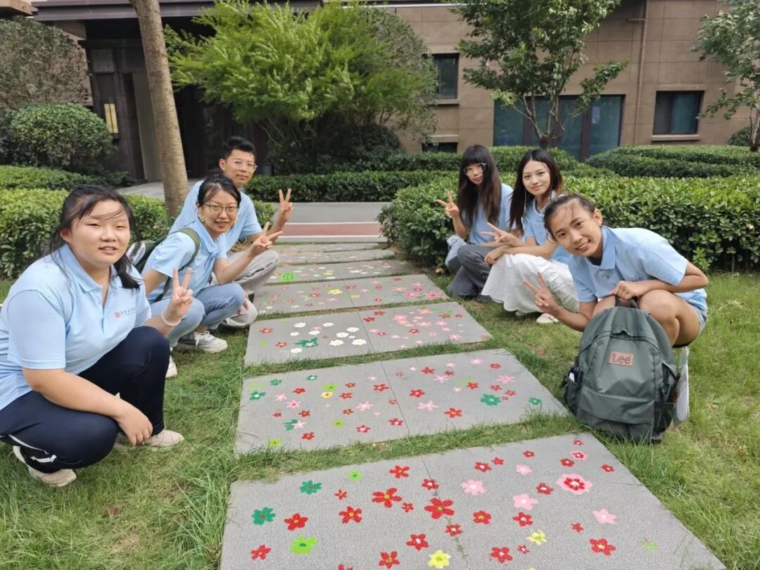 在圆满完成主体墙绘后,服务队继续延伸艺术服务的温度。7月10日,队员们发挥专业所长,在社区设立服务点,为居民免费绘制肖像速写。通过画笔精准捕捉居民的神韵与笑靥,一幅幅生动传神的肖像画成为连接艺术与生活的温情纽带,赢得了居民的由衷喜爱和称赞。次日,师生们俯身社区石板路,精心绘制点缀性的小碎花图案。花朵在步道上悄然“绽放”,为朴素的石板路增添了盎然生机与艺术趣味,美化了居民日常生活的“最后一米”。